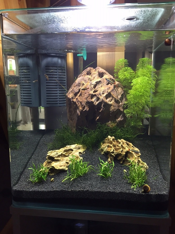 Zu den Fischen: Kardinäle sollten doch mindestens in einer 10er Gruppe gehalten werden( je mehr,desto besser kommen sie zur Geltung)-- dafür sind 35 L aber viel zu klein,diese Fische brauchen mehr Schwimmraum! ( Also entweder ein größeres Aquarium einfahren oder die Tiere abgeben)