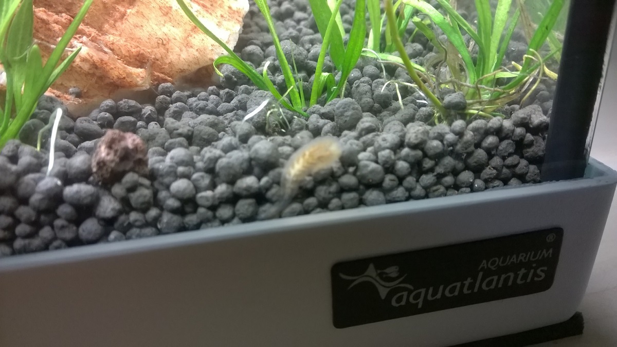 heute Morgen entdeckte ich in meinem neu eingerichteten 60 Liter Becken folgenden mir völlig unbekannten Mitbewohner: