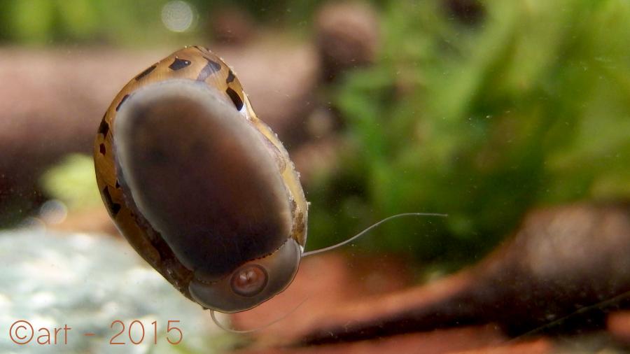 Im Aquarium hatte ich zwar schon immer Schnecken, aber immer als 'Zugabe', oder als 'Funktionsträger', nie als Hauptdarsteller. Die Vittina haben sich inzwischen eingelebt, und obwohl ich kein Fachmann bin, deute ich es als gutes Zeichen, daß der Mantel von Tag zu Tag deutlicher zutage tritt; bei dieser Vittina im Garnelenbecken umfasst er inzwischen wieder den ganzen Saum.