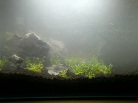 Wasser rein, Filter an, Scape neu gestalten :evil: (siehe oben), Fußboden trocken wischen, Becken nochmal auffüllen und....... die Nebel von Avalon! :happy: Da hat der Aquael wohl alles was eigentlich so im Boden steckt und nicht nach oben kommt ins Becken befördert... Wieder was gelernt. :saint: Das ist das schöne an der Aquaristik: Du gehst abends nie dümmer ins Bett als Du morgens aufgestanden bist! :happy: