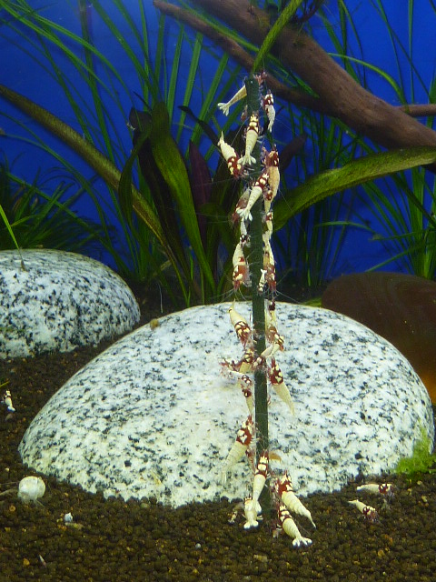 Hab vor ein paar Tagen mal einen Lolly ins Gesellschaftsbecken mit Red Fire und Amanogarnelen gesteckt.