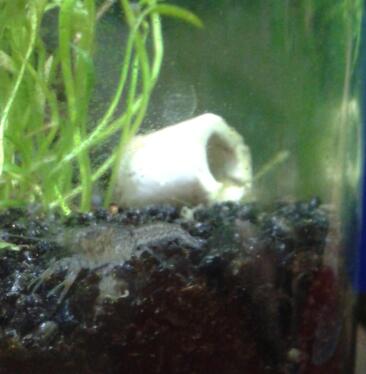 Dieses habe ich gestern komplett Grund gereinigt, da es total veralgt gewesen ist. Nun wohnen darin ca 10 Blue Jelly Garnelen und 12 ca. 1 cm große Zwergflusskrebsbabys, deren Existenz ich erst gestern beim sauber machen entdeckt habe. Die kleinen sollen da auf keinen Fall bleiben und sind auch eher aus versehen dort gelandet als ich ihre Mutter aufpäppeln musste. Ich dachte sie hätte die Eier verloren, da ich bis gestern keines der Babys entdeckt hatte umso größer die Freude über den unerwarteten Nachwuchs :happy:.