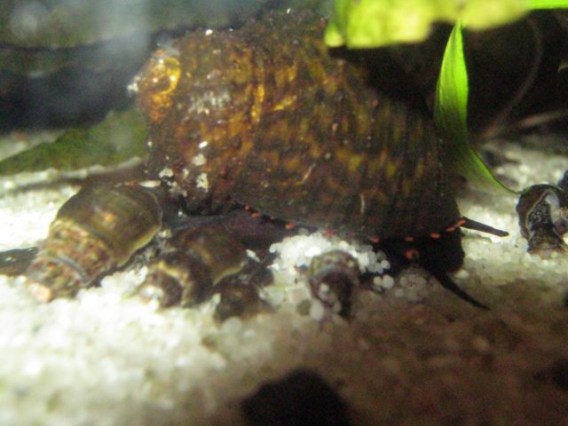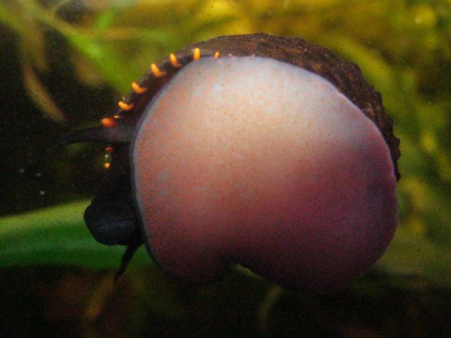 Das schöne ist, das es eine Weichwasserschnecke ist.Die sehen so schön aus mit den roten Pünktchen .