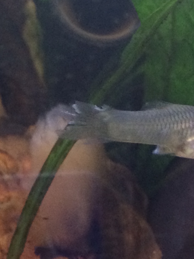 wir haben einen kleinen Nano (ca. 8 Liter) und nach drei Wochen Einfahrphase 5 Red Sakura, 1 Rennschnecke und ein Paar Endler Guppies reingesetzt. Schnecken und Garnelen geht es nach wie vor blendend, nur das Endler Weibchen zeigte nach einer Woche Schäden an der Schwanzflosse und schwamm etwas "torkelnd" (siehe Foto). Dem Erscheinungsbild nach tippe ich auf Flossenfäule. Auf Anraten des Fachhändlers haben wir beide Endler in ein Salzbad gegeben (1 Liter Aquariumwasser, 1 gestr. TL Meersalz, 1 Stunde). Leider hat sich daraufhin nichts wesentlich verändert. Beide Fische schwimmen jetzt nur noch wenig und halten sich fast ausschließlich knapp unter der Wasseroberfläche auf. Trotz langer Recherche weiß ich keinen Rat - alle Mittel gegen Flossenfäule machen ja Schwierigkeiten bei den Wirbellosen. Bei Behandlung in einem Quarantänebecken gibt kein Hersteller so wirklich an, wie lange die Fische drin bleiben müssen. Andererseits haben wir natürlich Angst, dass sich die Fische nach dem Zurücksetzen wieder infizieren, wenn das Becken selbst nicht behandelt wird. Hat jemand Erfahrungswerte und einen Tipp für uns? Sind als Anfänger für jeden Hinweis dankbar.