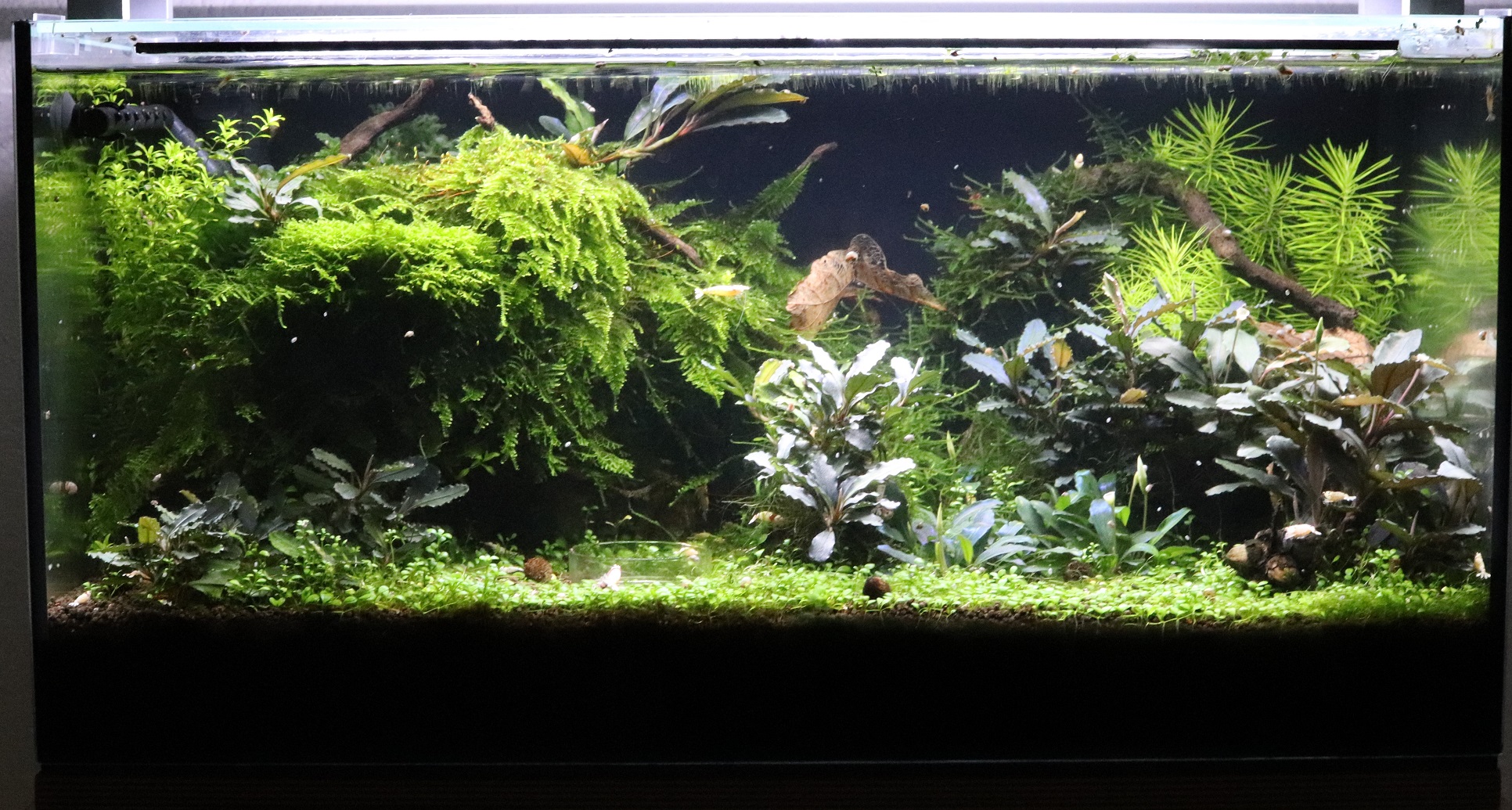 nachdem ich mich ja nun (mehr oder weniger gezwungener Maßen) dazu entschlossen habe alle meine Becken auf Soil, Bodenfilter und Osmosewasser umzustellen hier nun das Ergebnis. Das erste Becken habe ich ja schon in einem anderen Thread kurz gezeigt, hier nun der Rest. Nach 12h Arbeit am Samstag und tatkräftiger Hilfe meines Sohnes und meiner Frau habe ich schließlich gegen 22:30 die Garnelen wieder in ihr Heim setzen können. So wie es aussieht haben sie die Umstellung gut verkraftet.