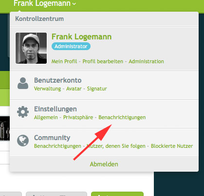 Nur die Benachrichtigungen selbst (über neue PN's oder über einen