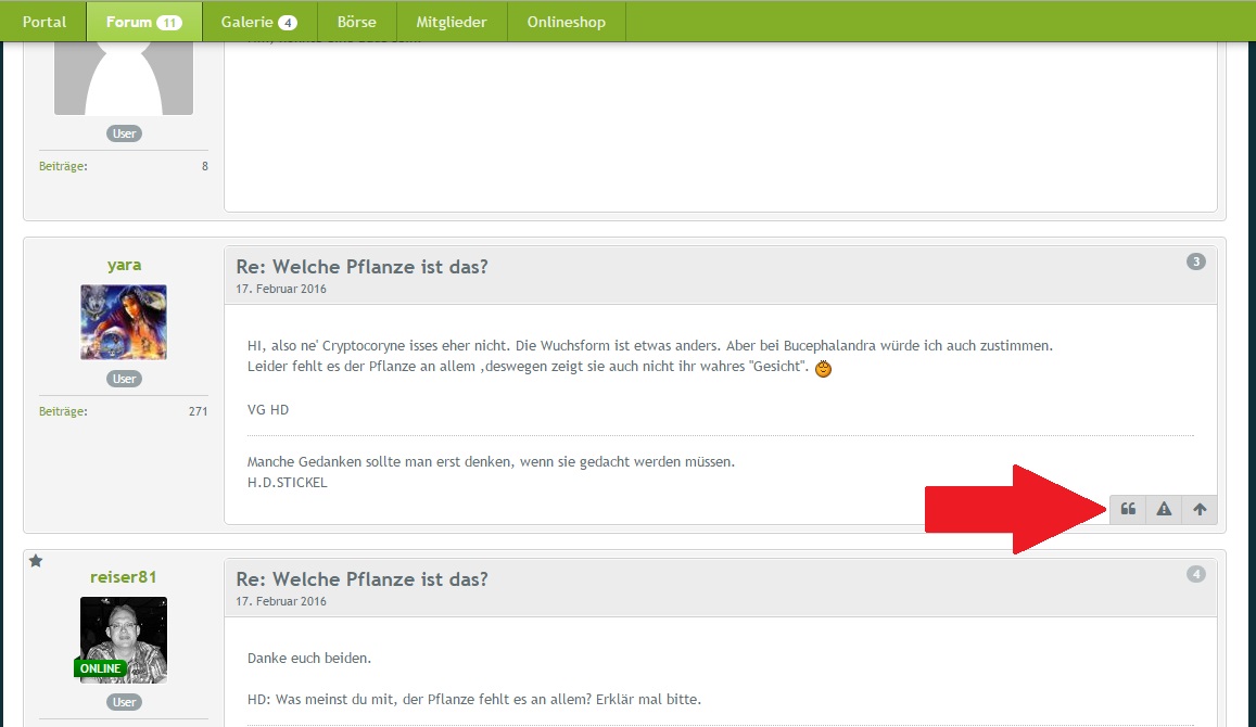 In Themen von anderen Usern ist der like/dislike-Button da.