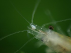 Jetzt ist mir gestern bei eine der Orange Rilie Garnelen ein weißer Punkt auf der "Nasenspitze" aufgefallen. Hab versucht davon Fotos zu machen. Aber den Punkt bekomm ich mit meiner Ausrüstung nicht scharf. Wie Saugwürmer schauts nicht aus find ich. Ansonsten ist bei der noch nichts auffällig, die ist putzmunter wie bisher.