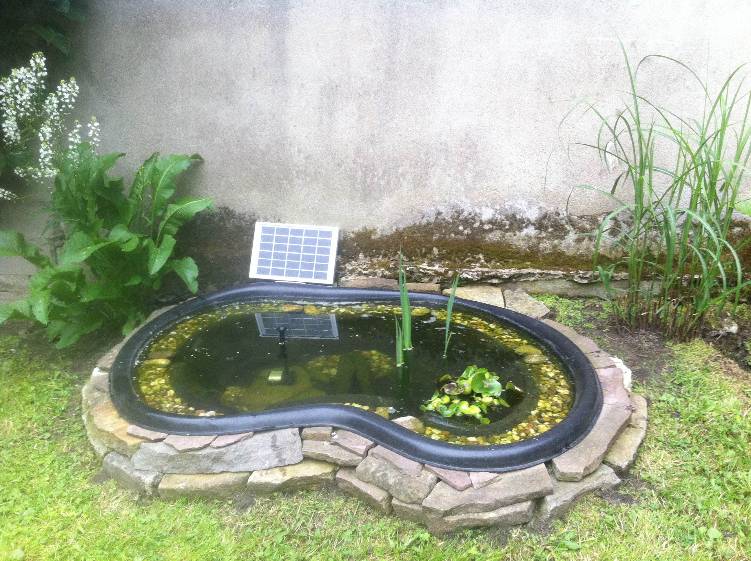 Von 2004-2007 hatte ich im alten Haus eine, vor vielen Jahren, eingegrabene Regentonne die gut 60-70 cm im Boden war. Zusätzlich hatte ich mir aus 3 grossen Mörtelkübeln und Resten von Plastikdachrinnen eine kleine Teichanlage gebaut mit fliessendem Wasser. Es wurde einfach durch eine kleine Pumpe wieder von unten nach oben gepumpt, der Strom kam aus der Steckdose.