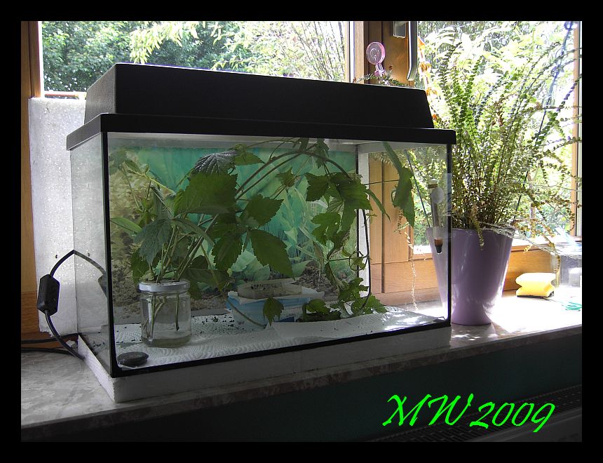 Dann hätte ich noch ein 20 Literbecken..das ist uralt, gebraucht gekauft und steht im Keller im Weg rum. Da waren früher immer die Wandelnden Blätter drin...