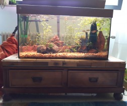 Dachte mir vielleicht habt ihr ja auch sowas zuhause rumliegen. Um evtl. Fragen vorzubeugen: Das Becken steht vorm Fenster, da ich da meine Regenbogenfische vermehren will. Die regieren gut auf Morgensonne. Daher ist die Rückwand derzeit auch noch ohne Foto. Die Heizung dort ist fast nie in Betrieb.