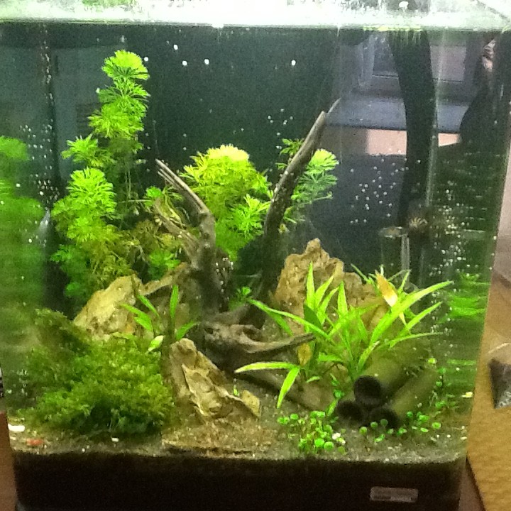 Vor einigen Wochen habe ich meinen bestehenden 30 Liter cube umgestaltet. Bis auf Bodengrund und Kies habe ich alles rausgemacht und neue Wurzel, Steine, Pflanzen rein. Habe dann einige Wochen gewartet und dann einige Red Fire und Red Rili Garnelen bestellt. Es waren insgesamt