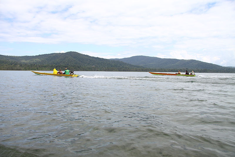 Wiedermal ging es um 6:30 los an den Towuti. Diesmal charterten wir zwei kleine Prahu (Boot), doch als die Fahrer sahen wer wir sind und was wir alles an Gepäck mitschleppten, meinten sie drei Boote wären besser... Also drei Boote und los in den Tominanga-Fluss.