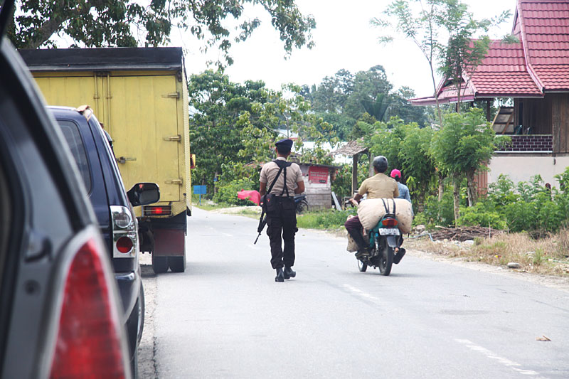 Nach einiger Weiterfahrt dann der nächste Schreck, Polizeisperre und Uniformierte mit Maschinenpistolen.....*Was ist der Grund ihrer Reise, warum wollen sie hier lang und wer sind sie überhaupt, die Pässe bitte* ... hm, es gibt immernoch Unruhen zwischen Christen und Moslems im Posogebiet und ein Vorfall vor einiger Zeit mit toten Polizisten hat zu der Aufrüstung der Beamten und großen Kontrollen geführt.... haben wir nichts mit am Hut und das erkannten sie auch schnell, sodass wir ungehindert weiter konnten.