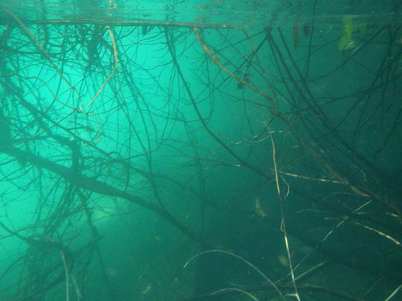 Da wo es etwas tiefer wurde waren wieder zahlreich die Blaufüsse unterwechs, egal ob nun auf Stein oder Holz. Zahlreich sind auch die Tylomelania Schneckenarten, von denen der Pososee beinahe überläuft. Auch die orange Tylo haben wir gefunden, hiervon aber nur Jungtiere und auch nur sehr spärlich. Sehr schön waren auch die hunderten von Caridina longidigita, die in Felsspalten sitzend hektisch mit ihren Fächern wedelten....