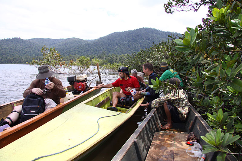 Wiedermal ging es um 6:30 los an den Towuti. Diesmal charterten wir zwei kleine Prahu (Boot), doch als die Fahrer sahen wer wir sind und was wir alles an Gepäck mitschleppten, meinten sie drei Boote wären besser... Also drei Boote und los in den Tominanga-Fluss.