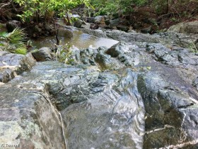 Die "Flüsse" dieser Insel nennen sich Guts. Guts sind Bachläufe welche durch Regenwasser entstanden sind. Das Regenwasser sammelt sich in den Bergen und fließt dann bergab in das Meer, Salz,- Brackwasser Teiche oder in Mangrovengebiete. Die Kraft des Wassers formte dabei über Jahre hinweg "Rinnen", in welchen sich die Bachläufe bilden konnten. In diesen Guts leben also unsere Fächergarnelen auf Saint Thomas.