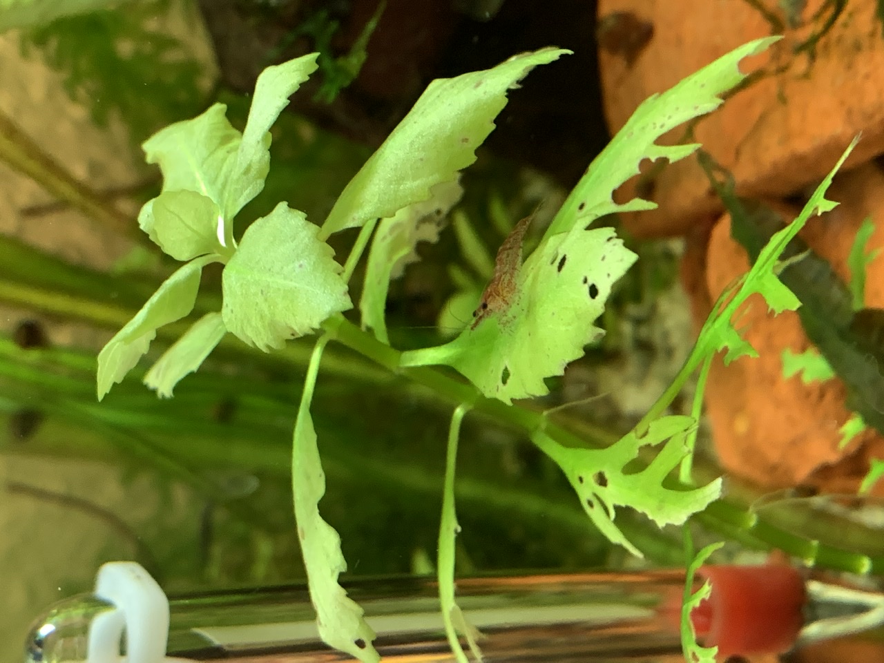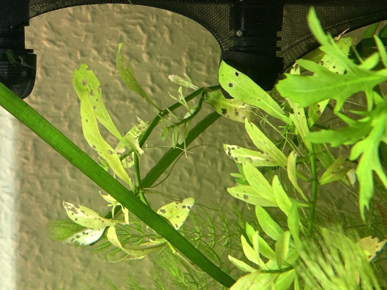 ich habe gerade auch zu tun mit Löchern in zwei unterschiedlichen Hygrophila-Arten. Beide haben löchrige, blasse Blätter.