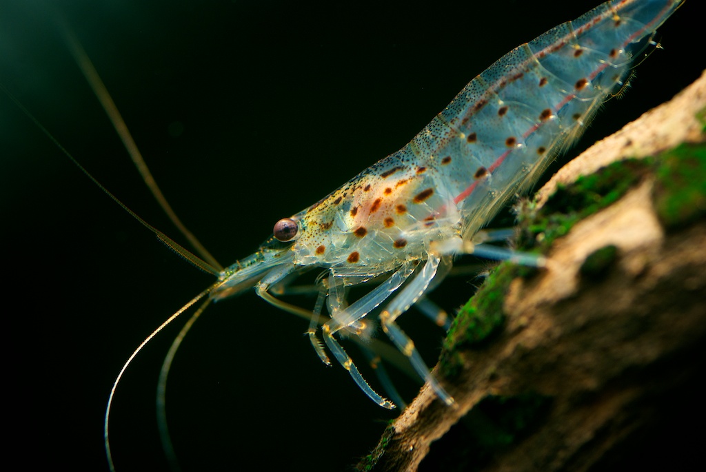 Ich hab also mal ein paar erste Versuche am Objekt gestartet und das die angehängten Bilder kamen dabei raus. Ich muss sagen: scharfstellen ist gar nicht so einfach!! Aber ich bin echt überrascht, welche Farben die Amaongarnele so hat und die man mit bloßem Auge gar nicht so sieht!