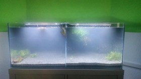 Achja das Becken habe ich geteilt, indem ich eine Glasscheibe mit AQ-Silikon eingeklebt habe (schöne Naht, gelle? :D :D :D )