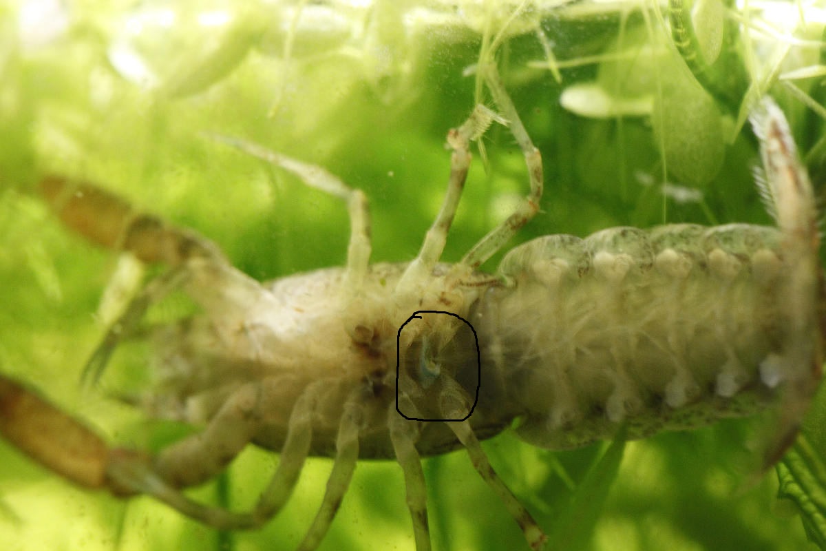 Die Befruchtung kann schon einige Zeit her sein, da die Krebsweibchen das Sperma in kleinen Taschen " aufheben" können.