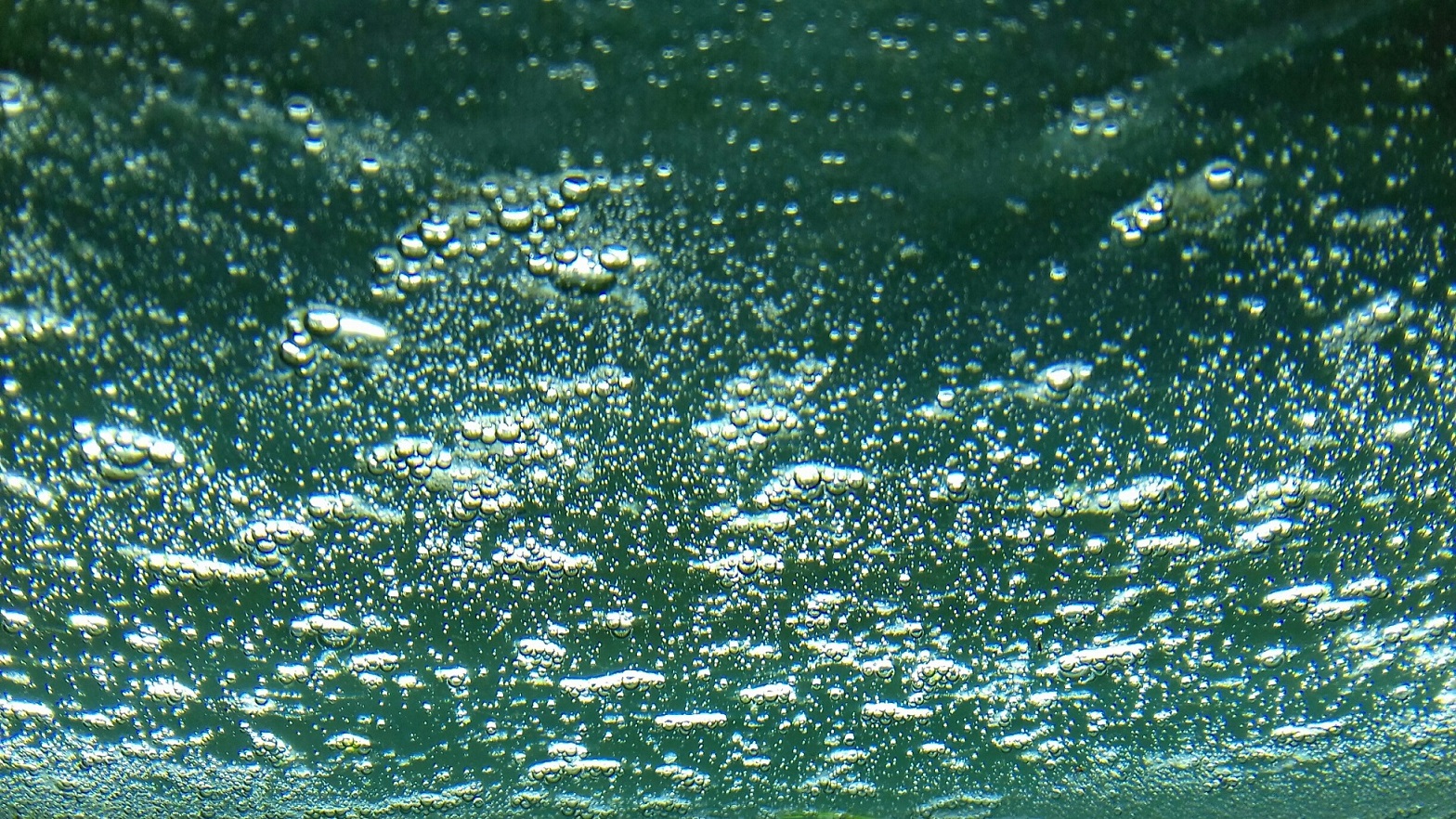 Uebrig bleiben schaumige Blaeschen, die zum Teil auf der gesamten Beckenoberflaeche kreisen, sich aber groesstenteils an den Kanten und vor allem in den Ecken sammeln.