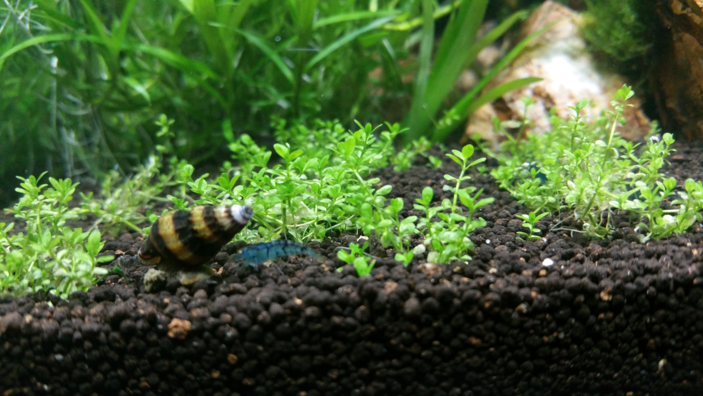 Vor 2 Tagen sind 10 blaue Tiger, sowie 10 White Pearl eingezogen und haben sich zu meinen 5 alten Raubturmdeckelschnecken gesellt.