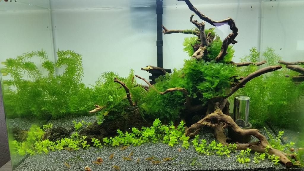 War wie gesagt der erste Versuch, beim nächsten Mal werde ich das Rohr noch etwas länger machen und ggfs den Schwamm kürzen, dadurch würde der Schwamm komplett hinter der Wurzel mit dem Moos verschwinden, da ich nach unten noch etwas Platz habe und der Ansaugkorb den Schwamm auch nicht zur Gänze ausfüllt.