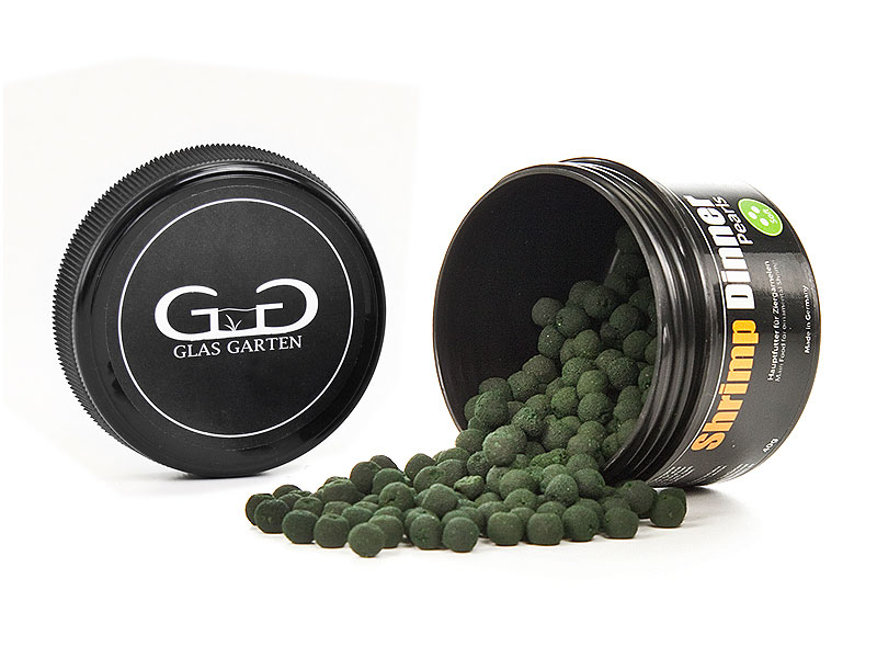 Eigentlich tüftelten wir an einem Mineralfutter und da Mineralien selbst nicht sonderlich attraktiv für Garnelen, Schnecken und Co. riechen/schmecken, haben wir uns für soft Pearls entschieden. Bei Pasten sind alle Inhaltsstoffe schon immer etwas "angelöst" und es riecht/schmeckt für die Tiere daher attraktiver. Die Akzeptanz der Tiere war bei unseren Tests mit Paste am besten, auch so wählerische Schnecken wie Rennschnecken gingen direkt drauf los und blieben bis alles aufgefuttert war. Wir finden die Fütterung von Paste-Masse aber immer etwas umständlich, daher wollten wir es in Kugeln/Perlen verarbeiten... lange Rede kurzer Sinn, da wir nun getüftelt und in Maschinen investiert haben, um solche Kugeln/Perlen herzustellen, lag es nahe sie auch für die Shrimp Dinner Rezeptur zu nutzen um dem Kunden eine weitere Auswahl zu bieten.