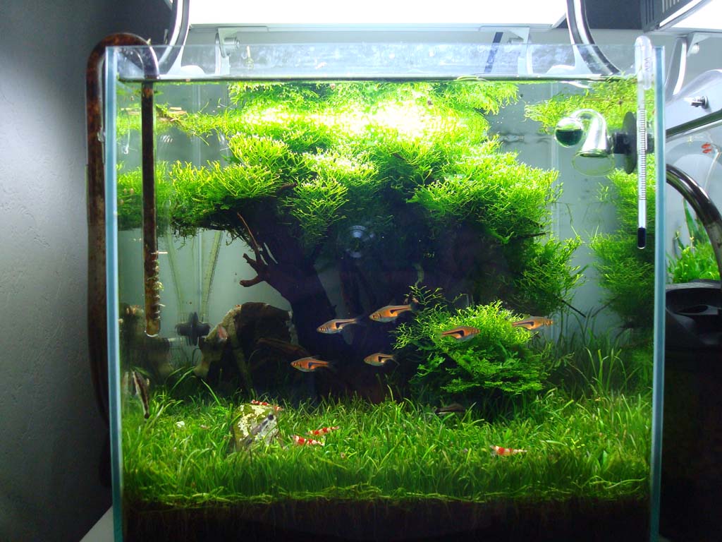 Das schwierige hier ist im grunde nur, ein entsprechende schönes Bäumchen zu finden, welches annährend wie ein Baum aussieht. Für die krone habe ich Riccia Flutians verwendet, welchses um die Äste gebunden wurde.