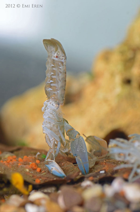 Bei näherer Betrachtung fanden wir dann auch die "Ausstiegsluke" hinten am Rückenpanzer. Sieht man längst nicht so gut wie bei Garnelen, weil sie genau auf der Kante zwischen Rücken und Bauch sitzt.