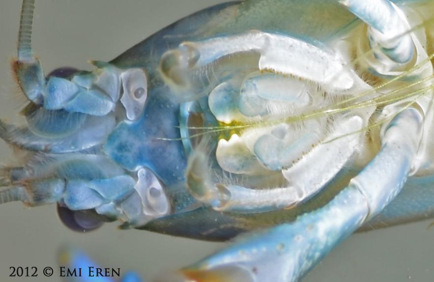 Bei näherer Betrachtung fanden wir dann auch die "Ausstiegsluke" hinten am Rückenpanzer. Sieht man längst nicht so gut wie bei Garnelen, weil sie genau auf der Kante zwischen Rücken und Bauch sitzt.