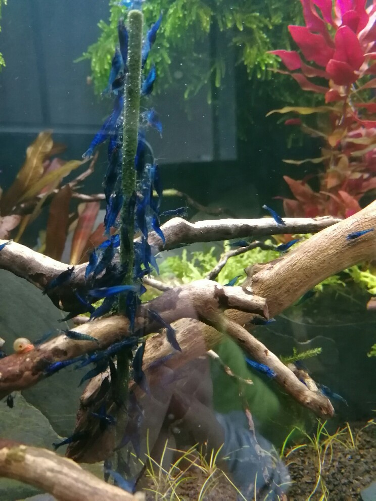 Die großen Garnelen stören sich scheinbar nicht an den Fischen, beim fütter surfen sie kopfüber an der Wasseroberfläche und holen sich ihren Anteil am Fischfutter. Aber ich seh seitdem deutlich weniger trächtige Weibchen und Jungtiere meist erst ab 1cm und größer. Ich schätze da holen sich die Fische ihren Anteil, aber das war mir Bewusst und ist ok. Die Zahl der sichtbaren Tiere ist seit Monaten stabil bei 150 bis 170 Tieren, also denke ich, das ein Eingreifen nicht nötig ist um die Garnelenpopulation zu stärken.