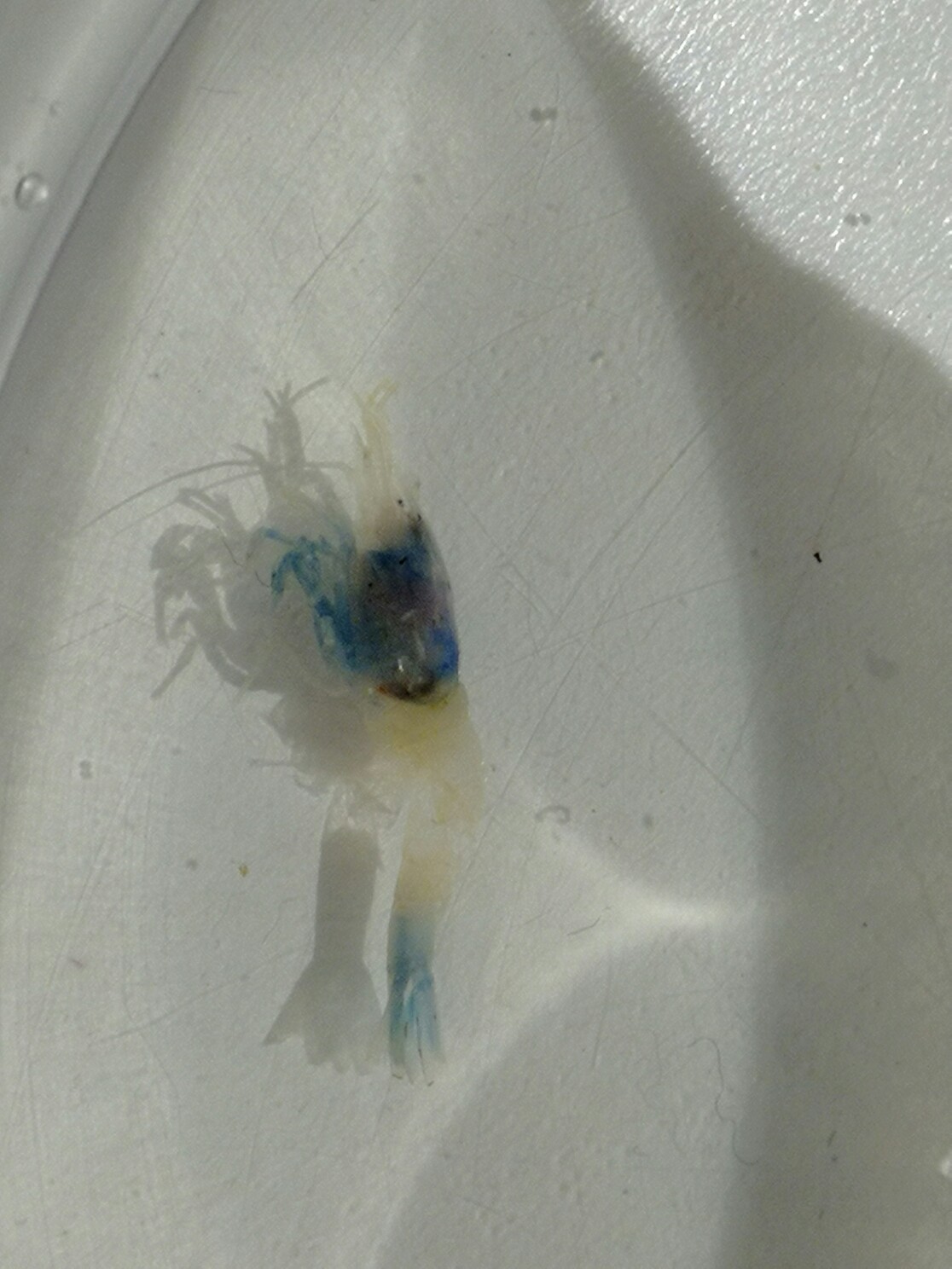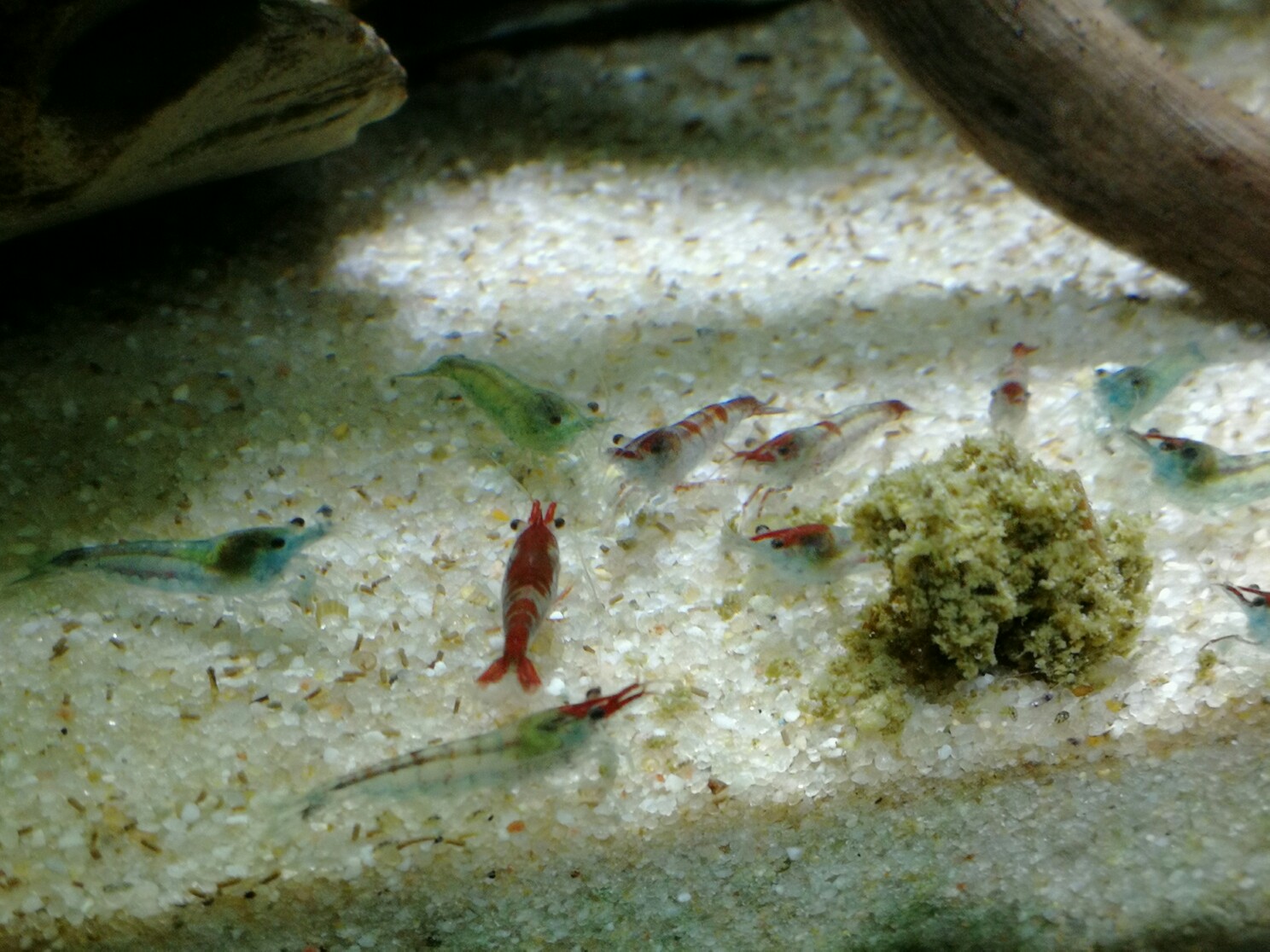 Anfang des Jahres hatte ich in zwei Tagen zwei tote Garnelen gefunden und musste mich zusammen reißen, damit ich nicht in Panik verfalle... Der Größe nach zu urteilen waren es ausgewachsene Tiere. Das eine davon definitiv ein "Blue Jelly" Männchen vom Startertrupp. Ein paar Tage vorher hab ich es fotografiert, weil es im unteren Bauchbereich eine längliche braune Stelle hatte. Es war aber weiter agil, ohne Auffälligkeiten. Hat so ausgesehn, als wenn sich n Mensch nen kleinen Holzspieß unter die Haut rammt. Hoffe es war nur Zufall und keiner von euch erkennt auf den Bildern was unerfreuliches ?(