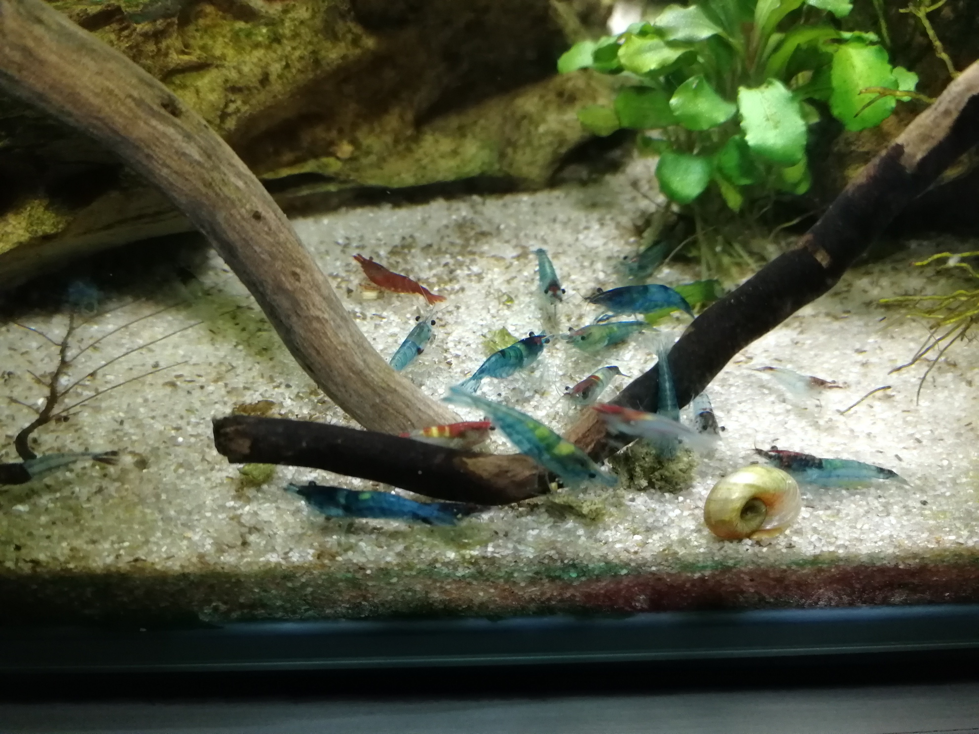 Anfang des Jahres hatte ich in zwei Tagen zwei tote Garnelen gefunden und musste mich zusammen reißen, damit ich nicht in Panik verfalle... Der Größe nach zu urteilen waren es ausgewachsene Tiere. Das eine davon definitiv ein "Blue Jelly" Männchen vom Startertrupp. Ein paar Tage vorher hab ich es fotografiert, weil es im unteren Bauchbereich eine längliche braune Stelle hatte. Es war aber weiter agil, ohne Auffälligkeiten. Hat so ausgesehn, als wenn sich n Mensch nen kleinen Holzspieß unter die Haut rammt. Hoffe es war nur Zufall und keiner von euch erkennt auf den Bildern was unerfreuliches ?(