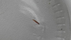 Sie sind beige, ca 4mm lang, beide Körperenden sind spitz, hinteres Ende ist heller, Kopf dünkler.