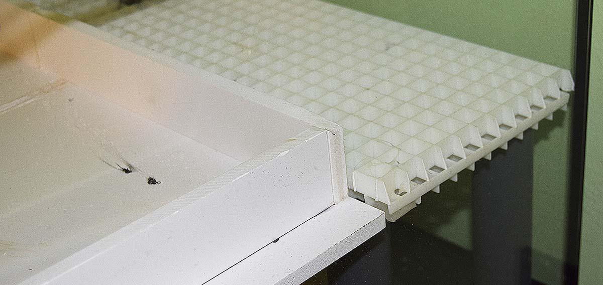 Da das Wasser nach wenigen Stunden dermaßen klar ist, kann man zur Zeit die Strömung nur an der gekräuselten Wasseroberfläche erahnen. Ein Zeitungspapierzipfel brauchte einige Zirkulationsrunden um in die Nähe des Bodens zu gelangen. Das Becken hat insgesamt 300 L und für die Tiere dann eine nutzbare Bodenfläche von 150 x 50 cm. Der dekorative Teil nur 110 x 50 cm weil je 20 cm für die Ansaug- und Ausstoßseite gebraucht wird. Wie ich meine Jungs kenne werden sie da wo es "hart" hergeht, auf den Rosten sitzen. Die Gabuns sicher nicht, da sie nicht gerade zum Exhibitionismus neigen.