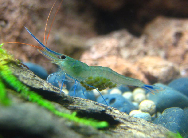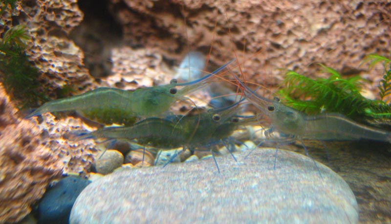Gestern sind dann noch Caridina holthuisi eingezogen. Sind noch etwas schüchtern, aber zwei habsch erwischt. ;)