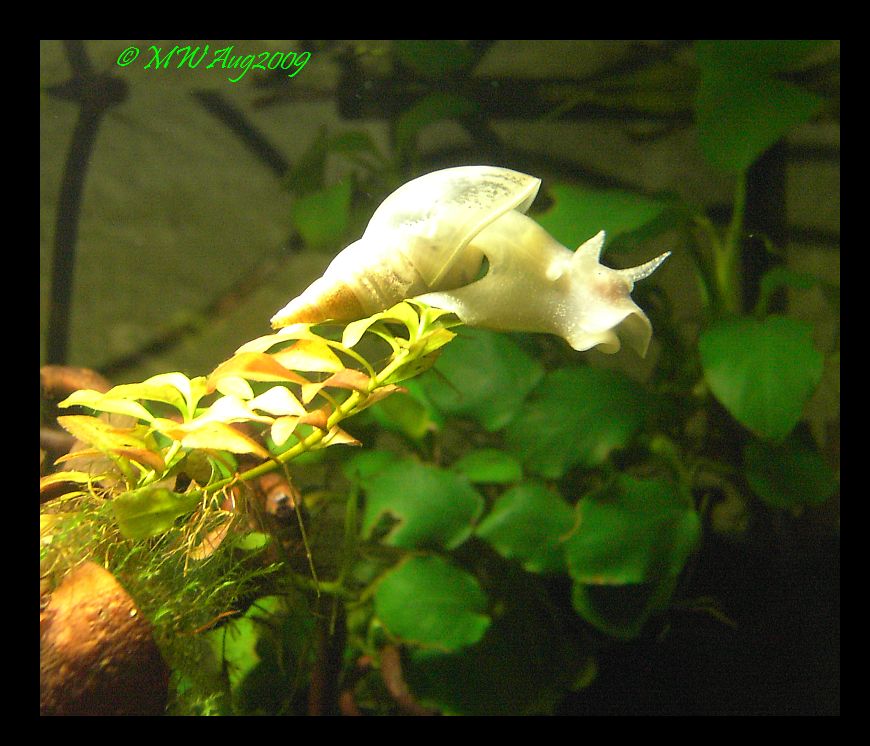 Die Jungen Schnecken, die erst draußen im Eimer auf Größe gebracht wurden, waren noch gelblich braun, im Aquarium wurden sie dann weiß. Ich weiß nicht genau, woran es liegt? Fehlende UV-Strahlung, so das die Pigmentierung ausbleibt?