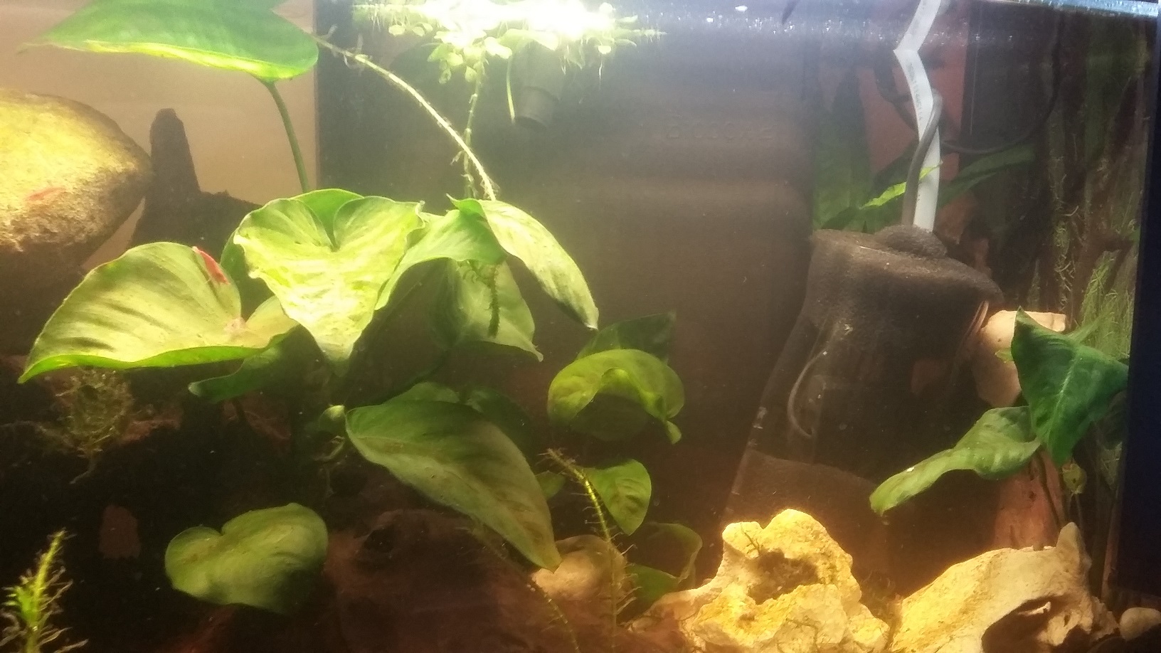 Ich finde dieses ganze Gerät sowieso mehr als doof, da man nicht vernünftig hinein-schauen kann, sie nicht auseinander nehmen kann und die Hand zum Fühlen nur unter großer Anstrengung (+Schmerzen) bis nach unten hinein schieben kann... Als ich versucht habe die eingesetzte Filtermatte zu reinigen (wofür ich sie natürlich raus nehmen musste, weil Box doof) kam mir auch gleich schwupp die erste Garnele entgegen...