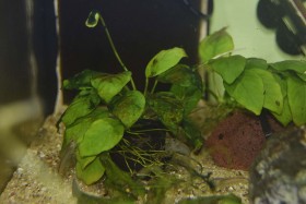 Ich hatte vor mal einen vorher/nachher Test zu machen um zu sehen was die Tierchen zu leisten vermögen. Also habe ich eine schlimm bewachsene Anubias bei den „Jungs“ ins Becken getan und bin rauf um die Kamera für das Vorher-Bild zu holen.