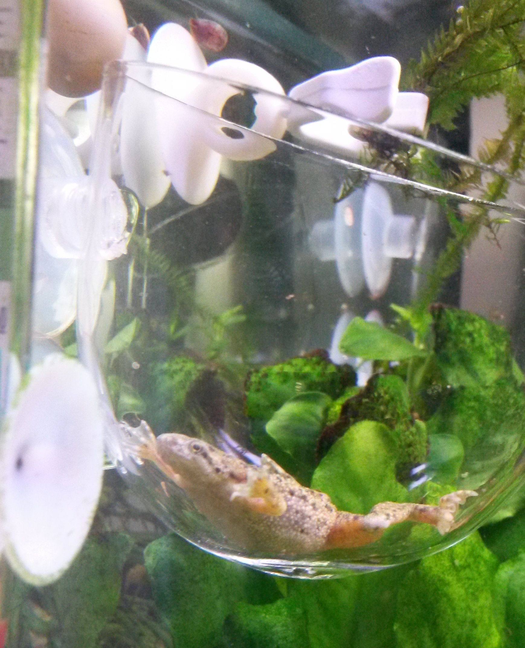 Auch hier ist der Wasserstand abgesenkt. In erster Linie damit die Frösche sich nicht so sehr zur Oberfläche abstrampeln müssen und auch für die AS zur Ablage der Gelege wenn sie denn geschlechtsreif sind.