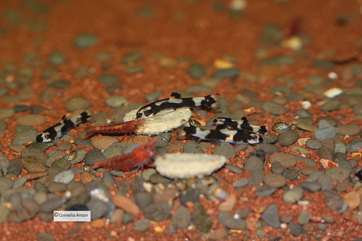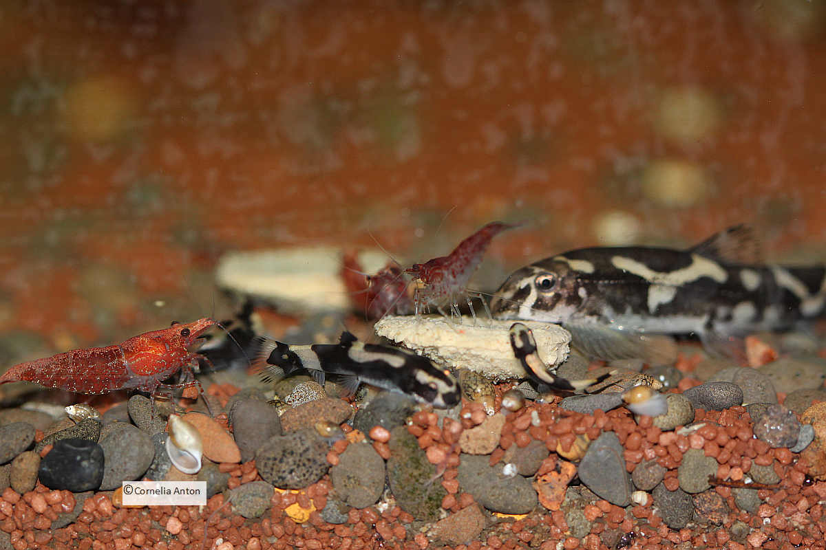 Die Flossensauger und Pandaschmerlen fanden das toll, und jagten den umherwirbelnden Futtertieren hinterher.