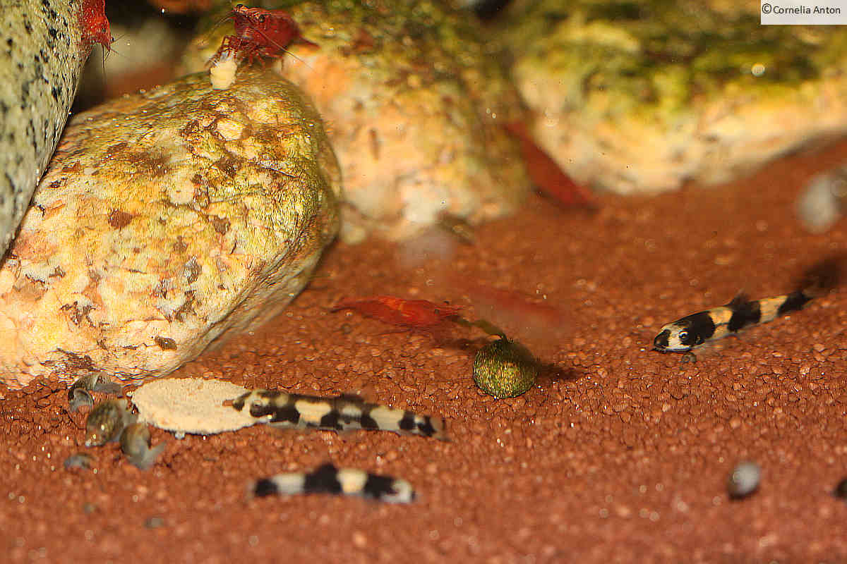 Die Pandaschmerlen fanden es offensichtlich nicht schlecht,weil sie sofort anfingen sich zwischen die Kiesel zu zwängen...