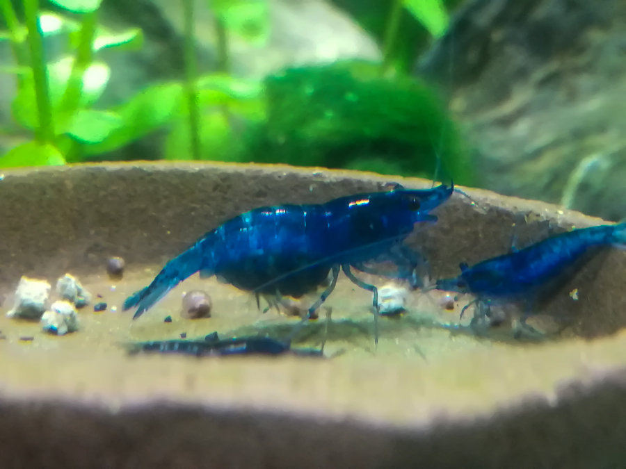 Ein paar Infos vorweg: Wir haben seit Weihnachten einen 30l-Cube, in den Anfang Februar 10 Blue Dream Garnelen eingezogen sind. Leider hatten wir Probleme mit dem Leitungswasser und außerdem mit Saugwürmern. Nach Tremazolbehandlung und Umstellung auf Osmosewasser lebten nur noch 2 Weibchen des Erstbesatzes, und auch die beiden sahen ziemlich räudig aus, so dass ich eigentlich jeden Tag mit ihrem Ableben gerechnet habe... :(