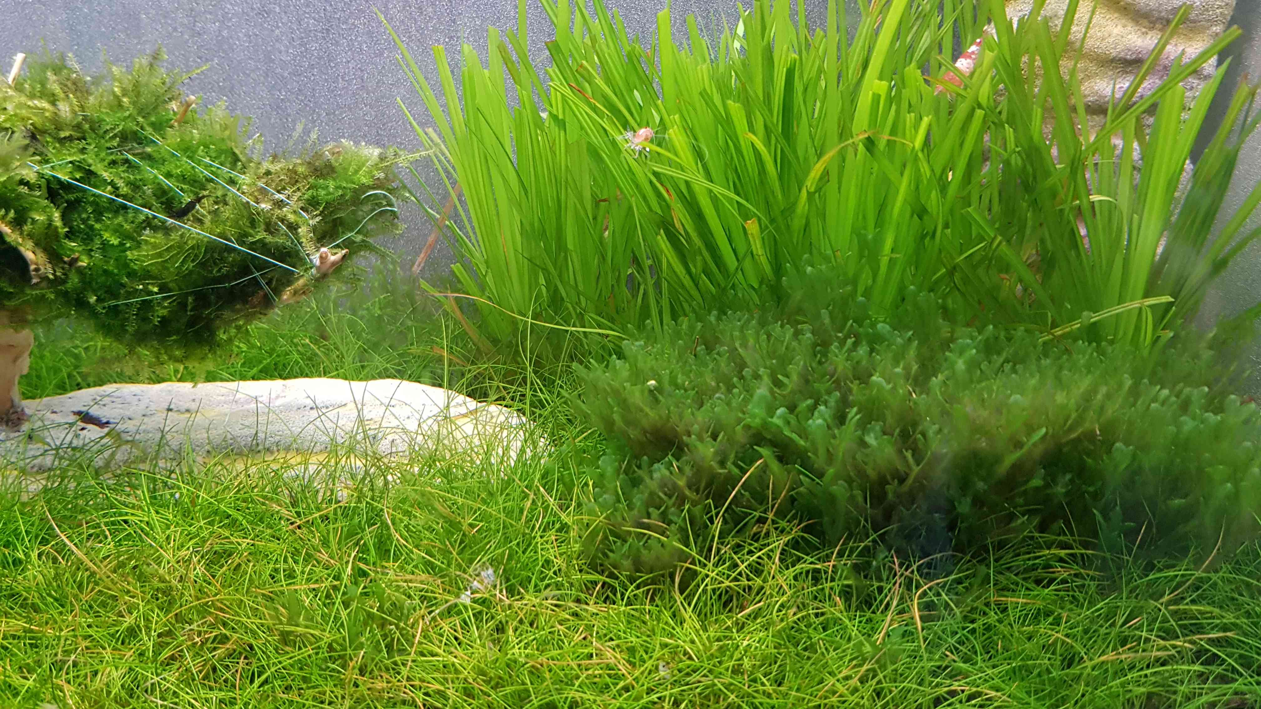 Es sind 30Liter Becken mit einem Außenfilter. In beiden Becken sind die gleichen Pflanzen drin und auch die gleiche Decko. Nur halt optisch anderes angeordnet.