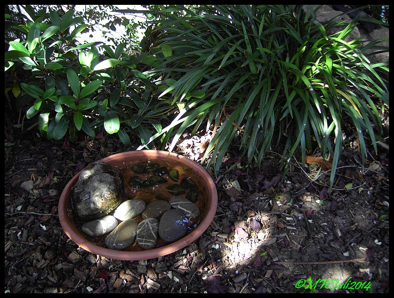 Meine Vogeltränke hat immer Steine drin liegen. Damit impfe ich auch neue Becken an.