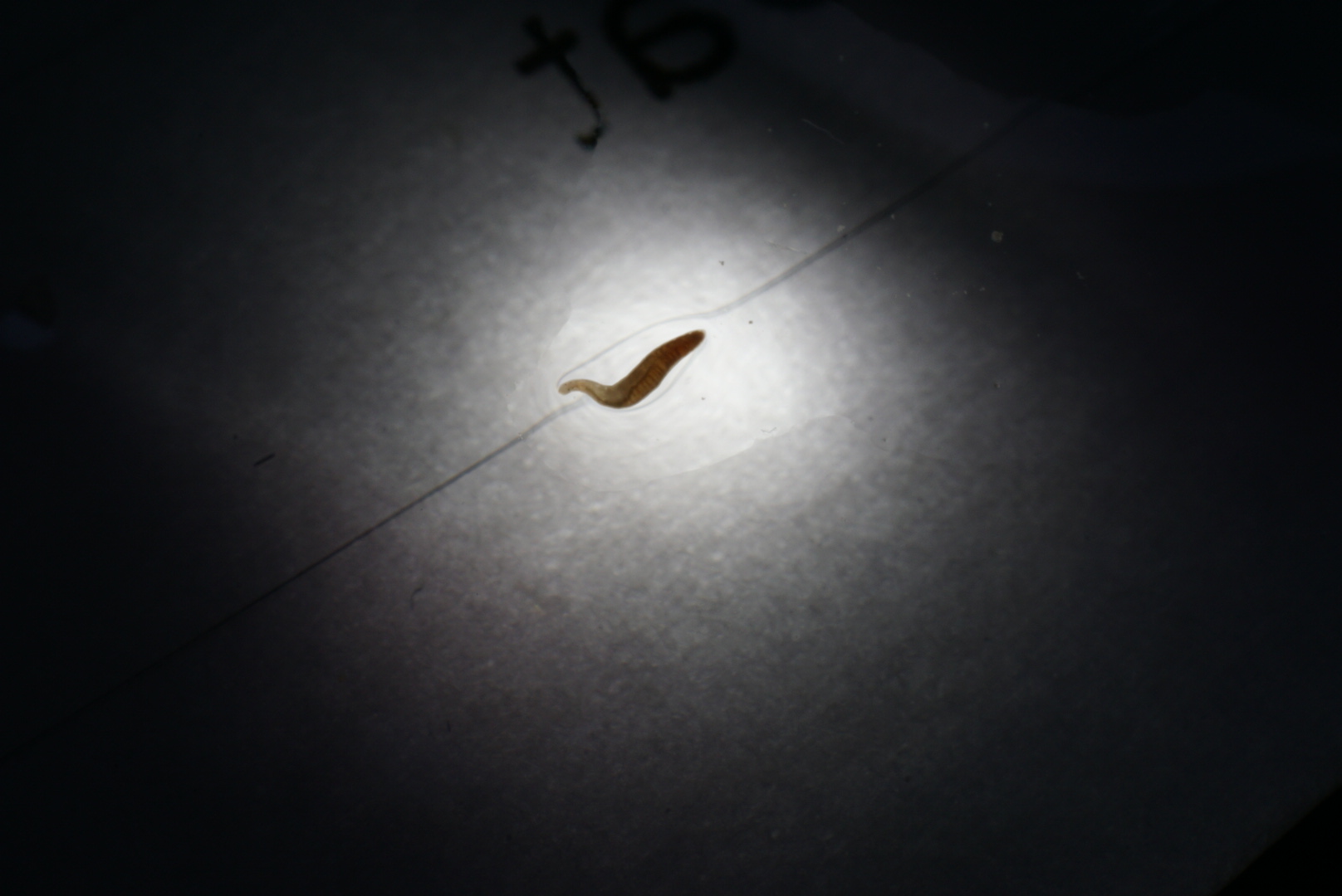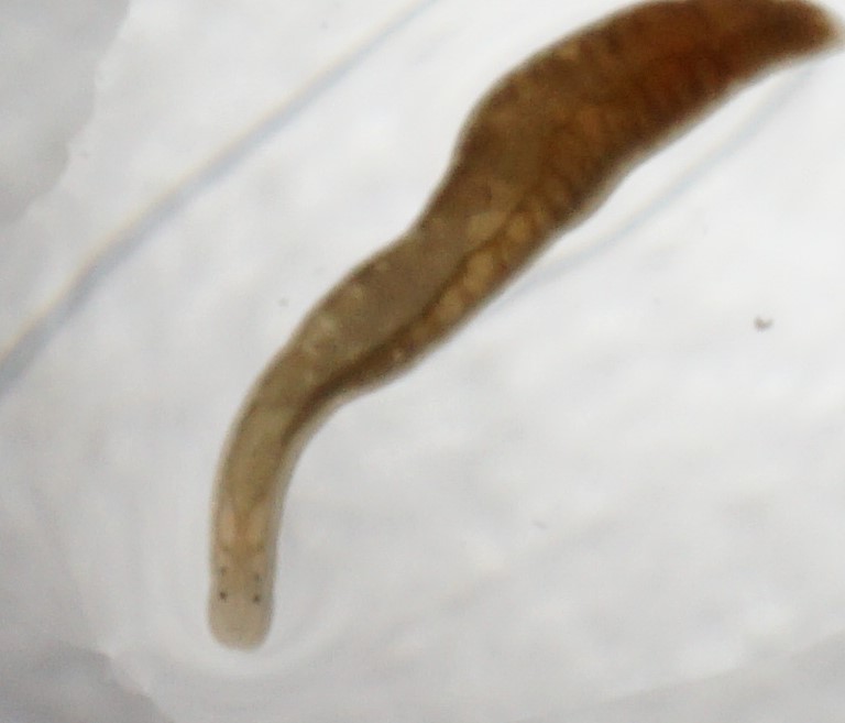 Dachte erst, dass es sich um eine eigentümliche Planarienart handelt, doch heute Vormittag hab ich das Tierchen genauer untersucht und festgestellt, das es definitiv keine ist.