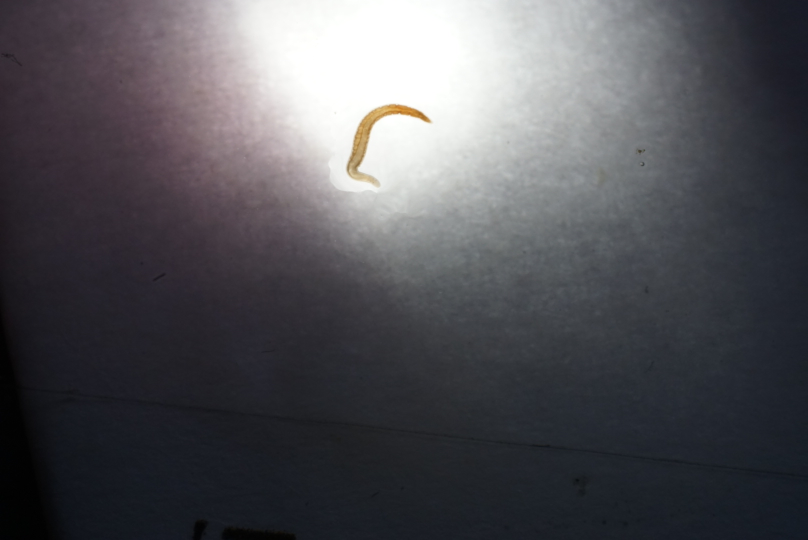 Gestern beobachte ich Nachts kurz vorm Schlafengehen mit der Taschenlampe nochmal ganz glücklich 3 wenige Tage alte Babys, bis mir auffällt das bei der einen etwas komisch ist. Pinzette gezückt und festgestellt, das am Bauch der kleinen eine Art dünner Wurm hängt.