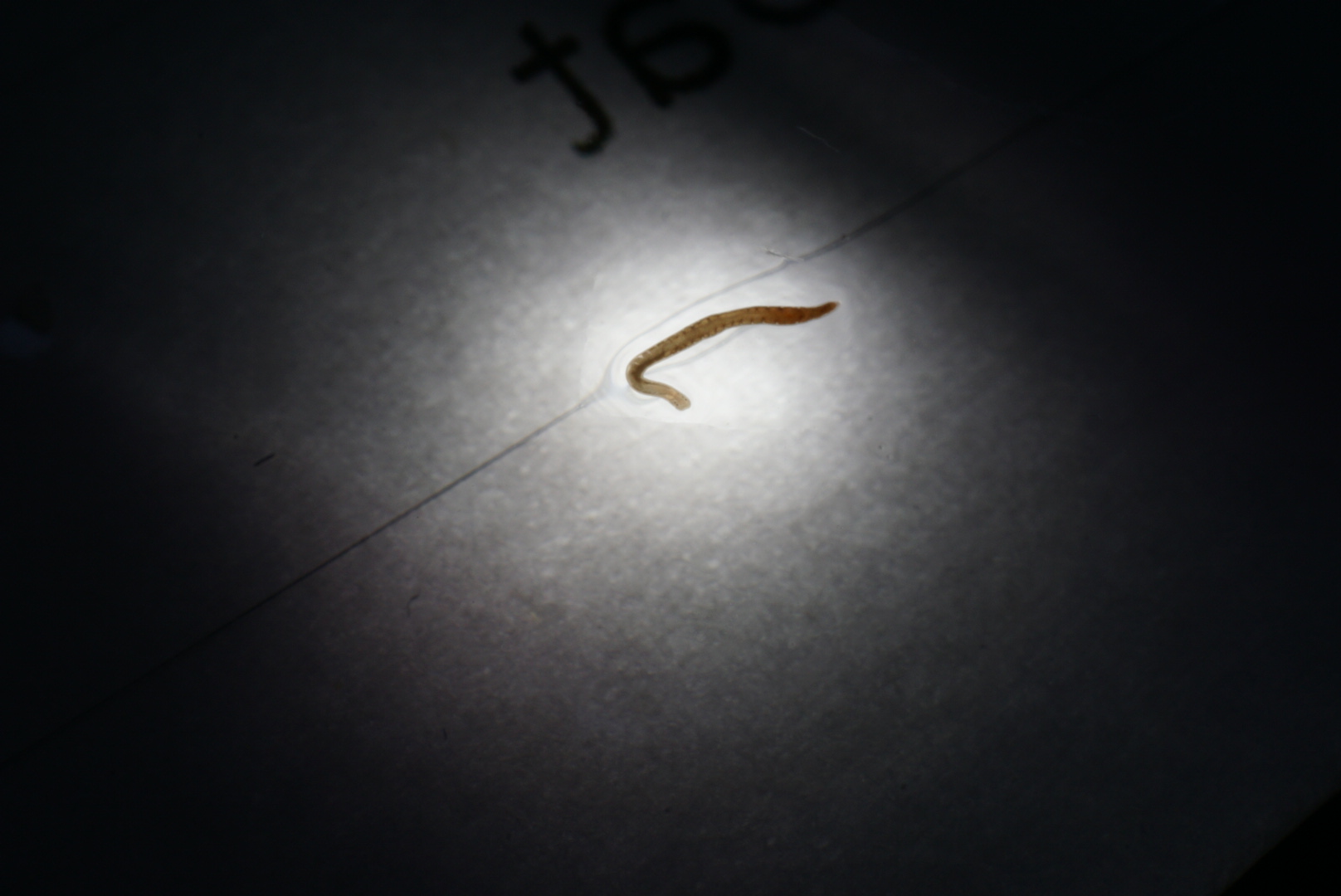 Dachte erst, dass es sich um eine eigentümliche Planarienart handelt, doch heute Vormittag hab ich das Tierchen genauer untersucht und festgestellt, das es definitiv keine ist.